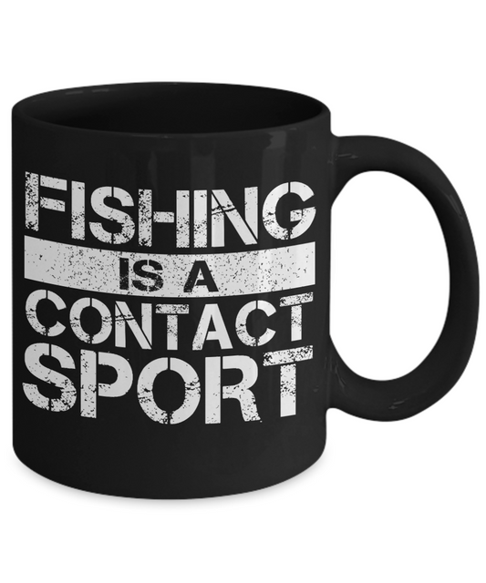 Fishing Love Coffee Mug,Fishing Is Contact Sport-Black Porcelain Coffee Mug 11 oz for dad, fishing, fishermen, son, Daughter