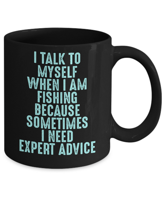 Fishing Love Coffee Mug, I Talk To Myself When I Am Fishing-Black Porcelain Coffee Mug 11 oz for dad, fishing, fishermen