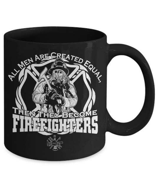 Firefighter Gift Coffee Mug, All Men Are Created Equal, Then They Become Firefighters -Black Porcelain Coffee Mug 11 oz for Firefighters, Firemen, Firemen daddy, Firefighter dad