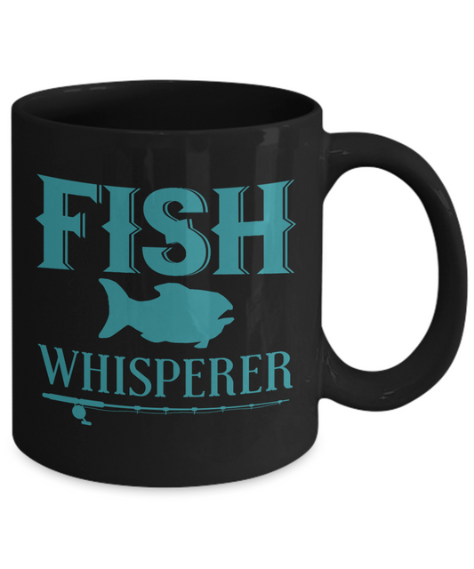 Fishing Love Coffee Mug, Fish Whisperer-Black Porcelain Coffee Mug 11 oz for dad, fishing, fishermen, son, Daughter