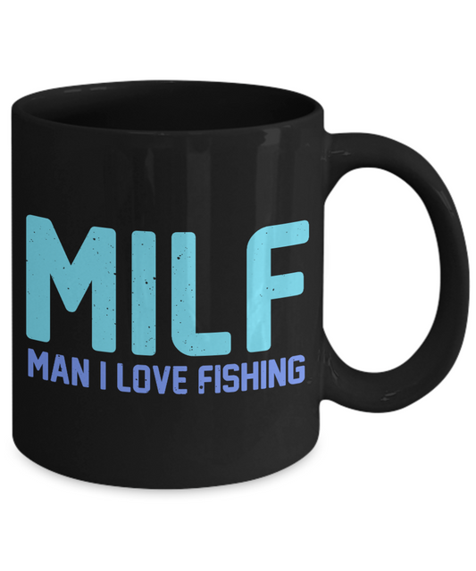 Fishing Love Coffee Mug, MILF- Man I Love Fishing-Black Porcelain Coffee Mug 11 oz for dad, fishing, fishermen, son, Daughter