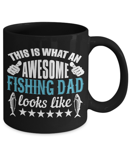 Fishing Love Coffee Mug, This Is What An Awesome Fishing Dad Looks Like-Black Porcelain Coffee Mug 11 oz for dad,fishing,fishermen,son