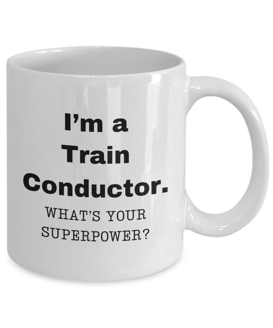I am a Train Conductor, what is your super power, Train Conductor coffee mug, Birthday cup for Train Conductor -11 oz White ceramic mug