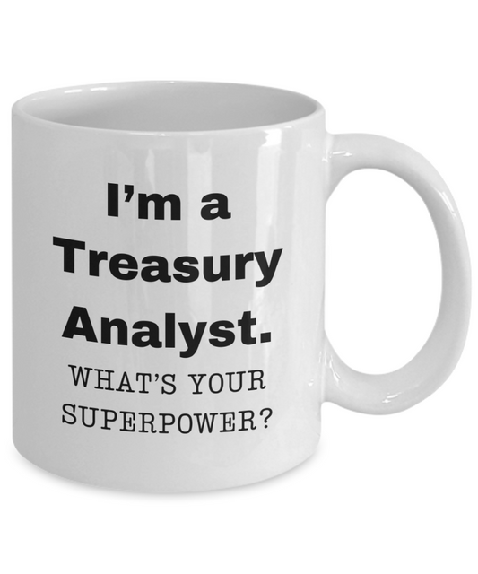 I am a Treasury Analyst, what is your super power, Birthday cup for Treasury Analyst -11 oz White ceramic mug
