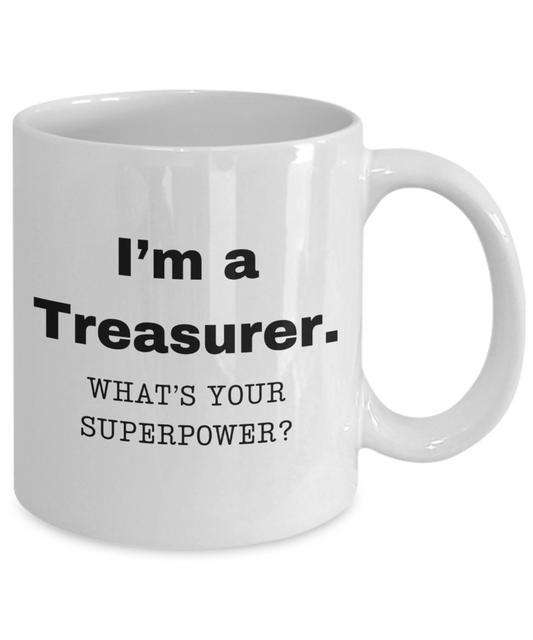 I am a Treasurer, what is your super power, Treasurer coffee mug, Birthday cup for Treasurer -11 oz White ceramic mug