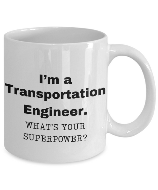 I am a Transportation Engineer, what is your super power, Birthday cup for Transportation Engineer -11 oz White ceramic mug
