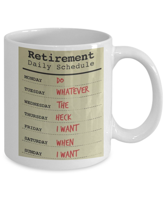 Retirement Schedule Do Whatever Funny White Coffee Mugs Tea Cups 11 OZ Gift Ideas for retirement men retirement plans