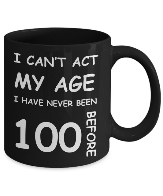 100th Birthday Gift for Women & Men - I can't act my Age, I have never been 100 Before - Black Porcelain Coffee 11 oz for Ladies & Gents - Born In 1920