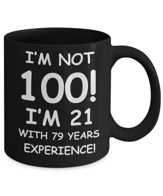 100th birthday mug gifts , I'm not 100, I'm 21 with 79 Years Experience - Black Coffee Mug Tea Cup 11 oz Gift