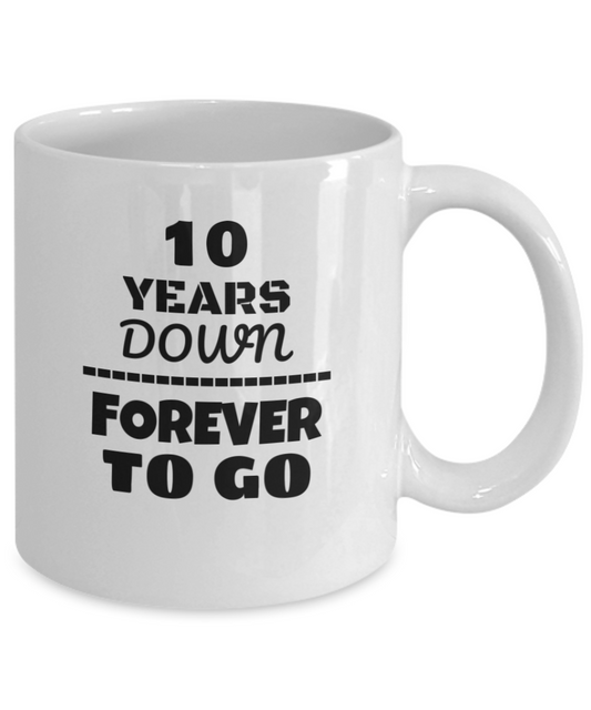 10TH ANNIVERSARY Wedding Celebration Coffee Mug - 10 Years Down Forever to Go Wedding Anniversary - Funny Coffee White mug 11 oz