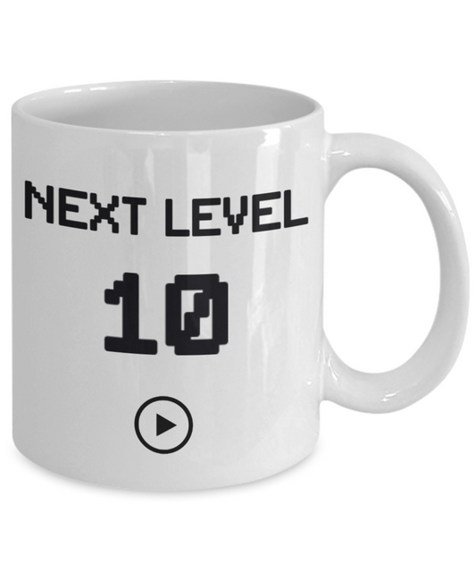10th Birthday Gift Coffee Mug For Kids, Next Level 10, Gamer Coffee Mug, Birthday Mug- White Porcelain Coffee Mug 11 Oz Funny Quotes Coffee Mug