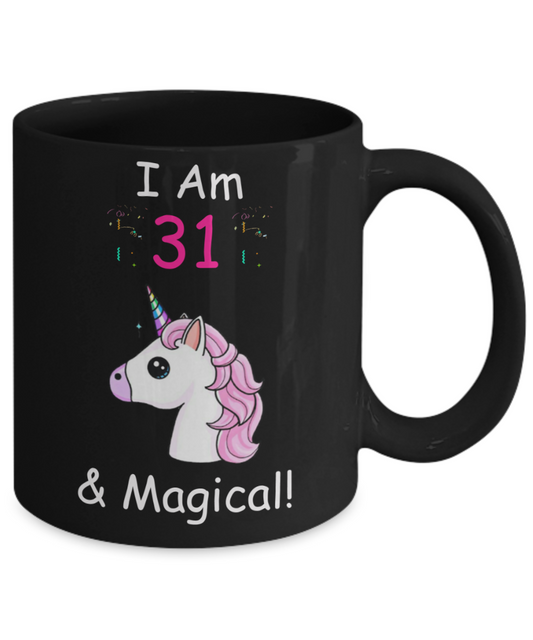 Unicorn Birthday gift 31st Birthday Gift for Women - I Am 31 & Magical Unicorn Mug - Funny Black Porcelain Coffee 11 oz for Grandma, Mom, Sister, Best Friend, Women, Her - Born In 1989