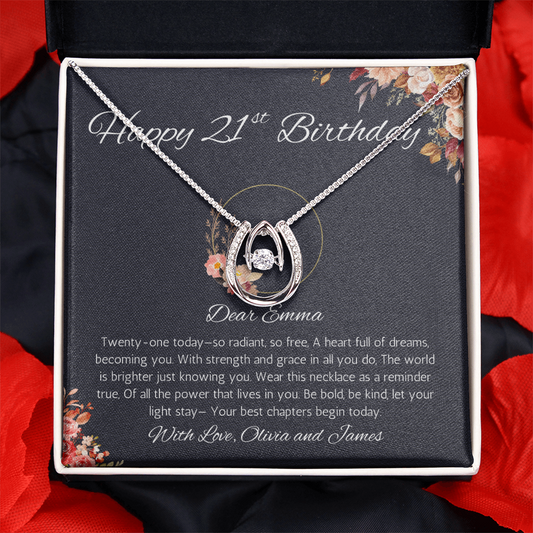 21st Birthday Women Gift Lucky in Love Message Card Necklace for Daughter Sister Girlfriend Jewelry From dad Mom Brother friend