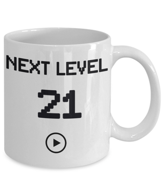 21st Birthday Special Gift Coffee Mug, Next Level 21, Gamer Coffee Mug, Birthday Mug- White Porcelain Coffee Mug 11 Oz Funny Quotes Coffee Mug