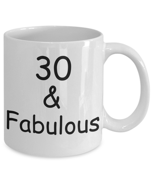 30th birthday Mugs for Women & Men - 30 And Fabulous - Funny White Porcelain Coffee 11 oz