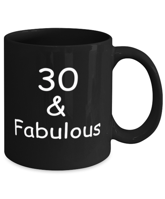 30th birthday Mugs for Women & Men - 30 And Fabulous - Black Porcelain Coffee 11 oz