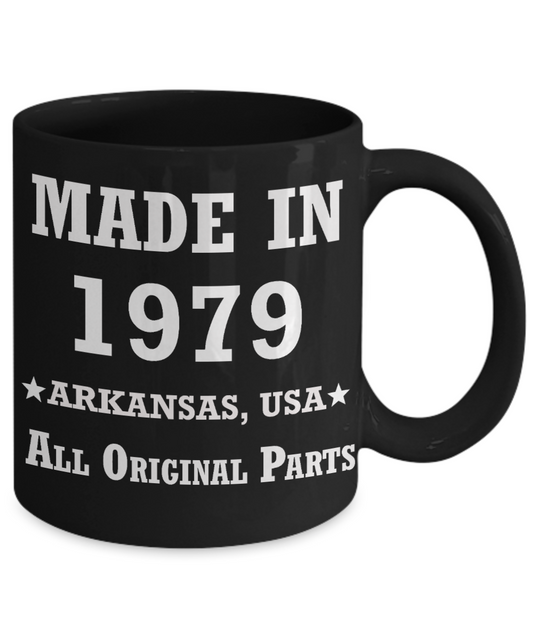 4oth birthday gifts for women - Made in 1979 All Original Parts Arkansas - Best 40th Birthday Gifts for family Ceramic Cup Black, Funny Mugs Gift Ideas 11 Oz