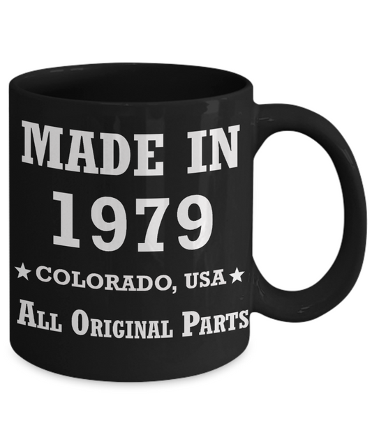 40th birthday gifts for men - Made in 1979 Colorado All Original Parts - Best 40th Birthday Gifts for family Ceramic Cup Black, Funny Mugs Gift Ideas 11 Oz