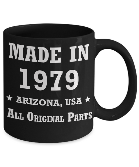 4oth birthday gifts for women- Made in 1979 All Original Parts Arizona - Best 40th Birthday Gifts for family Ceramic Cup Black, Funny Mugs Gift Ideas 11 Oz