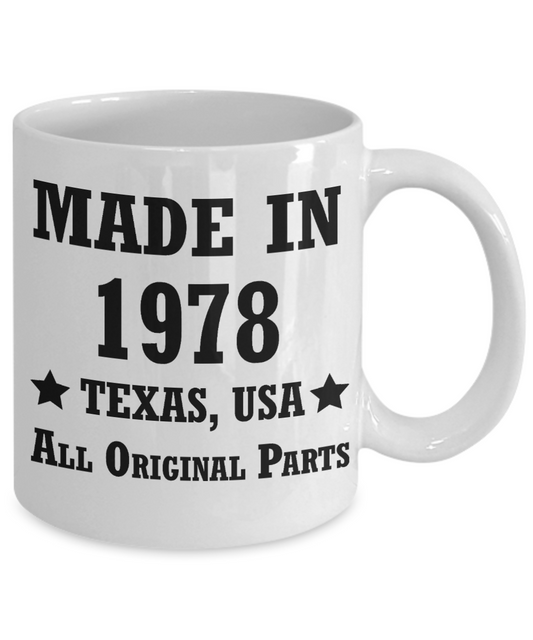 40th birthday gifts for men/women, Texas 1978 Birthday Gift Mugs - Made in 1978 All Original Parts Texas - Best 40th Birthday Gifts for family Ceramic Cup White, Funny Mugs Gift Ideas 11 Oz