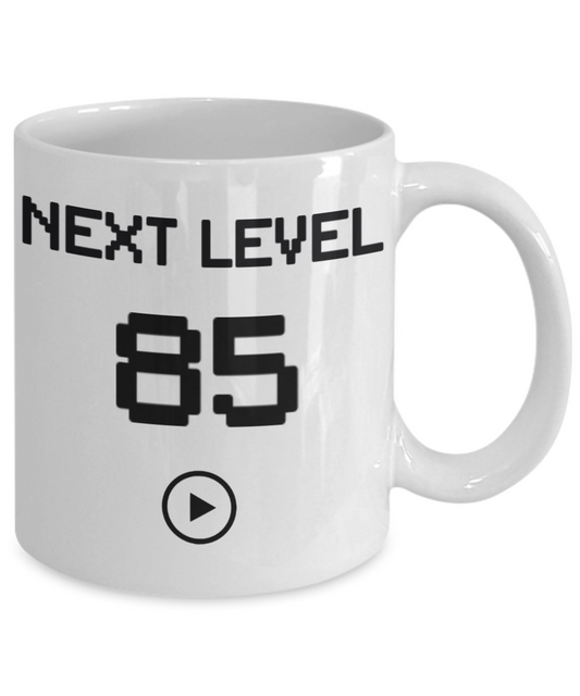 85th Birthday Coffee Mug, Next Level 85, Gamer Coffee Mug, Birthday Mug- White Porcelain Coffee Mug 11 Oz Birthday Coffee Mug