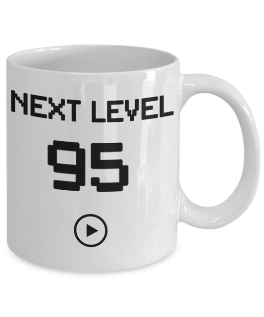 95th Birthday Coffee Mug, Next Level 95, Gamer Coffee Mug, Birthday Mug- White Porcelain Coffee Mug 11 Oz Birthday Coffee Mug