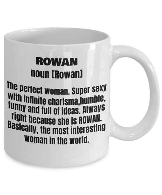 Rowan First Name Adult Definition - Funny White Porcelain Coffee Mug Cute Ceramic Cup 11 oz