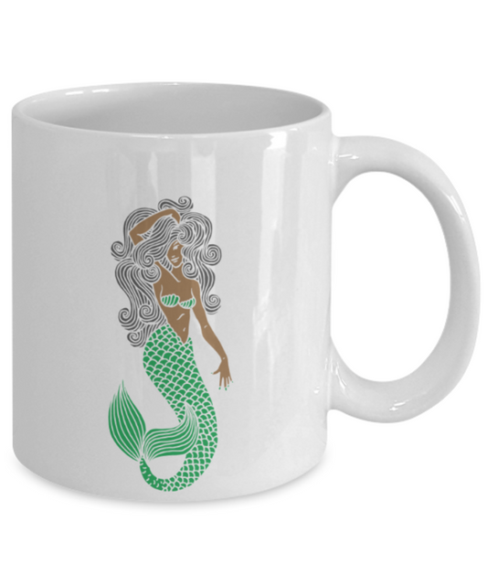 Mermaids Lovers Mugs , All natural - White Coffee Mug Porcelain Tea Cup 11 oz - Great Gift