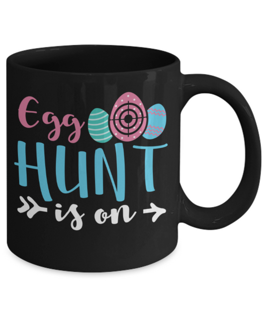 Personal creations gifts easter mugs - Egg hunt is On - Black Porcelain Coffee Mug Cute Ceramic Cup 11 oz