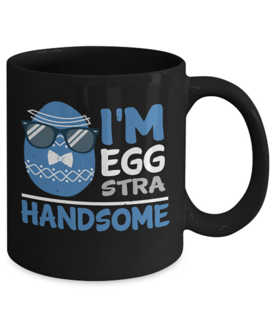 Personal creations gifts easter mugs - I'm Egg stra Handsome - Black Porcelain Coffee Mug Cute Ceramic Cup 11 oz