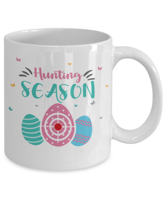 Personal creations gifts easter mugs - Egg hunting season - White Porcelain Coffee Mug Cute Ceramic Cup 11 oz