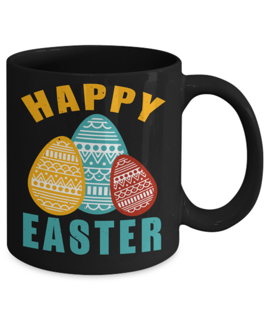 Personal creations gifts easter mugs - Happy Easter - Black Porcelain Coffee Mug Cute Ceramic Cup 11 oz