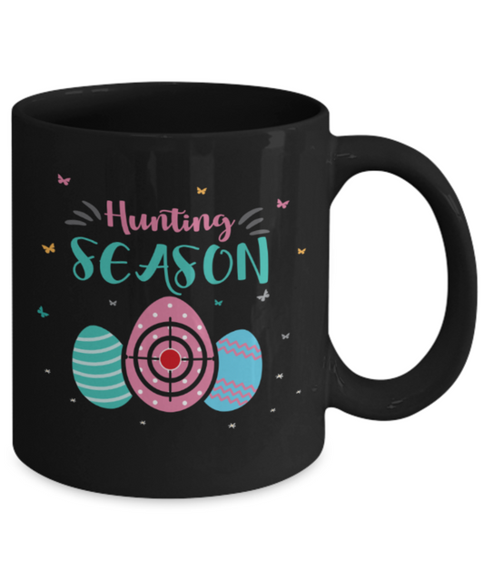 Personal creations gifts easter mugs - Egg hunting season - Black Porcelain Coffee Mug Cute Ceramic Cup 11 oz