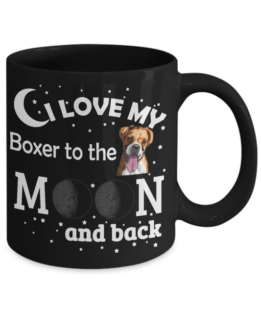 Personalized Dog Lover Gift Coffee mug,I Love My Boxer To The Moon And Back-Black Porcelain Coffee Mug 11 oz