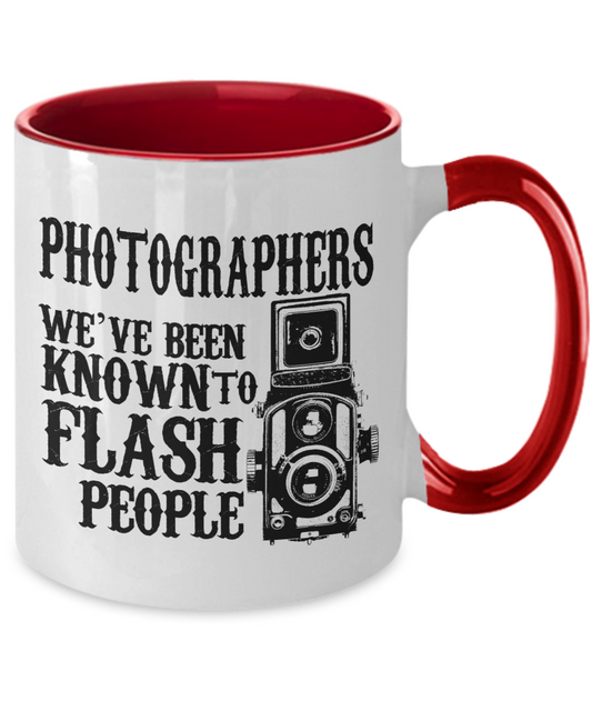 Photographers we have been known to flash people coffee mugs gifts for photographers and cameramen - 11 OZ Two Tone mugs tea cup Gift Ideas Coffee mugs