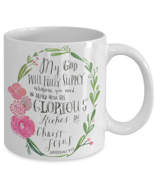 Philippians 4:19 bible quotes, My god will fully supply you need - White Coffee Mug Tea Cup 11 oz Gift