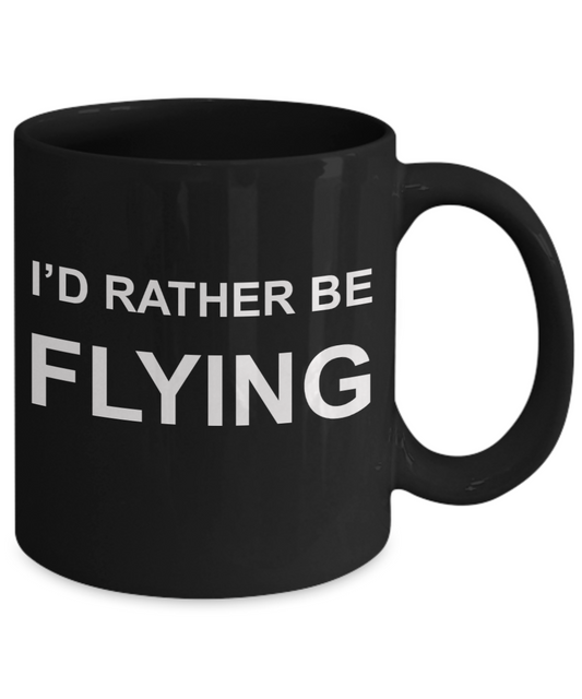 Pilot shot glass quotes mugs, I'd rather be flying - Black Porcelain Coffee 11 oz