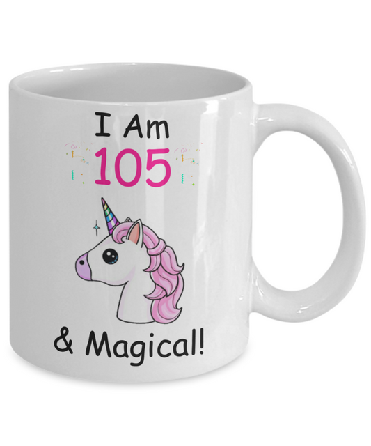 105th Birthday Gift for Women - I Am 105 & Magical Unicorn Mug - Funny White Porcelain Coffee 11 oz for Grandma, Mom, Sister, Best Friend, Women, Her - Queens are Born In 1915