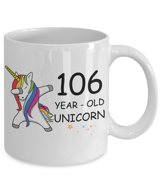 106th Birthday Gift for Women - 106 Year Old Unicorn Dabbing Mug - Funny White Porcelain Coffee 11 oz for Grandma, Mom, Sister, Best Friend, Women, Her - Legends are Born In 1914
