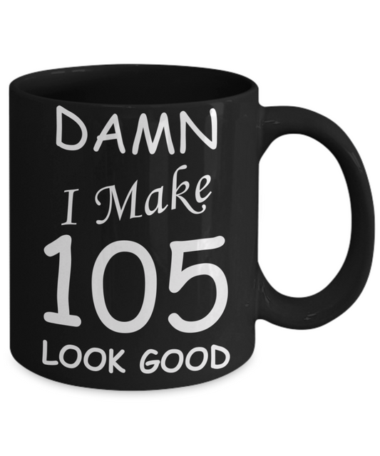 105th birthday Mugs for men/women - Damn I Make 105 Look Good, Born In 1915 Birthday Mugs - Funny Black Porcelain Coffee 11 oz