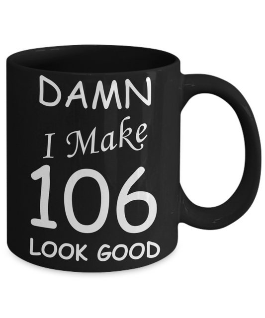 106th birthday Mugs for men/women - Damn I Make 106 Look Good, Born In 1914 Birthday Mugs - Funny Black Porcelain Coffee 11 oz