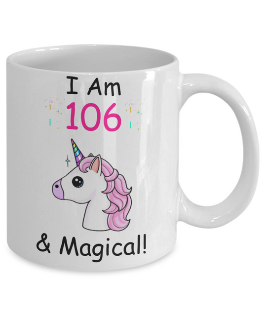 106th Birthday Gift for Women - I Am 106 & Magical Unicorn Mug - Funny White Porcelain Coffee 11 oz for Grandma, Mom, Sister, Best Friend, Women, Her - Queens are Born In 1914