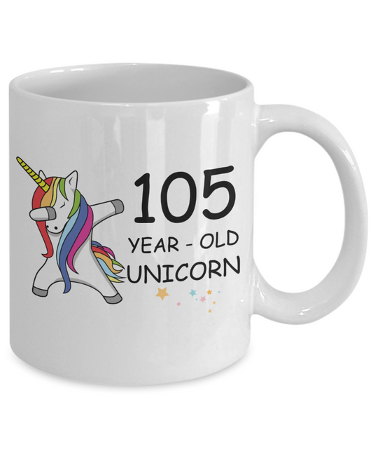 105th Birthday Gift for Women - 105 Year Old Unicorn Dabbing Mug - Funny White Porcelain Coffee 11 oz for Grandma, Mom, Sister, Best Friend, Women, Her - Legends are Born In 1915