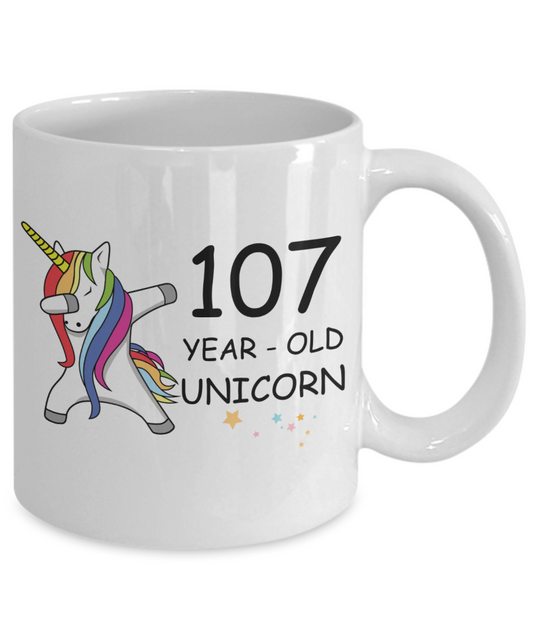 107th Birthday Gift for Women - 107 Year Old Unicorn Dabbing Mug - Funny White Porcelain Coffee 11 oz for Grandma, Mom, Sister, Best Friend, Women, Her - Legends are Born In 1913