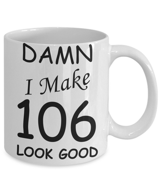 106th birthday Mugs for men/women - Damn I Make 106 Look Good, Born In 1914 Birthday Mugs - Funny White Porcelain Coffee 11 oz