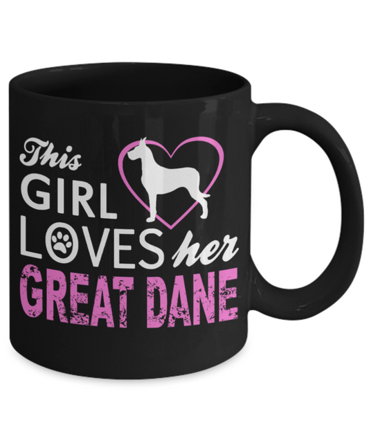 Animals and Pets Lovers Gifts , This girl loves her Great Dane - Black Coffee Mug Porcelain Tea Cup 11 oz - Great Gift