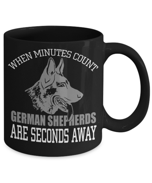 Animals and Pets Lovers Gifts , German shepherds are seconds away - Black Coffee Mug Porcelain Tea Cup 11 oz - Great Gift