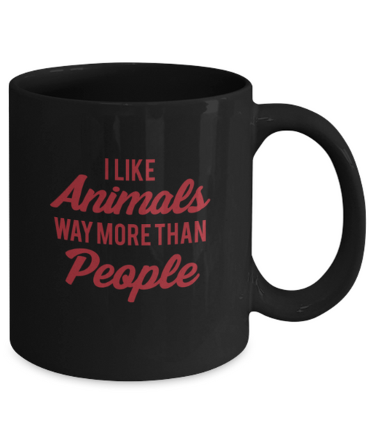 Gift gor dog lovers , I like animals way more than people - Black Coffee Mug Porcelain Tea Cup 11 oz - Great Gift