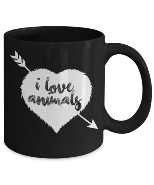 Gift gor Animals lovers , I love animals - Black Coffee Mug Porcelain Tea Cup 11 oz - Great Gift