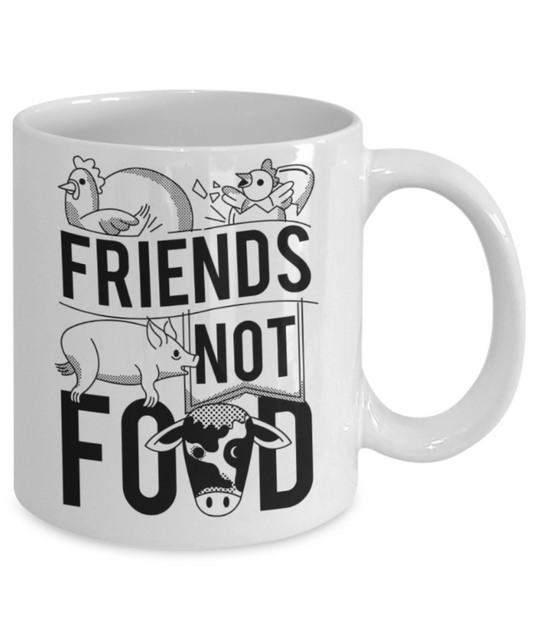 Gift gor Animals lovers , Friends not Food - White Coffee Mug Porcelain Tea Cup 11 oz - Great Gift